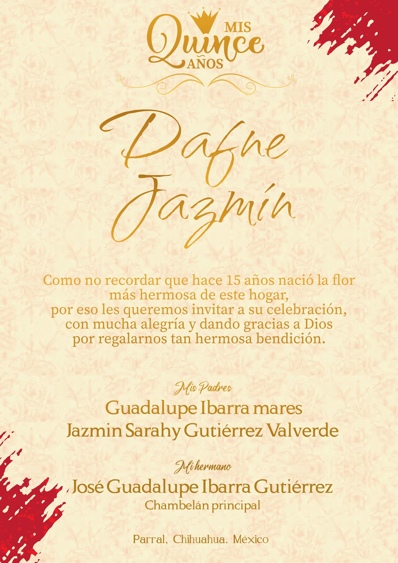Es de gran ayuda e importancia que confirmes tu asitencia a mis XV años con anticipación para poder reservar tu lugar y no perderme de tu compañía en ese día tan especial e inolvidable.